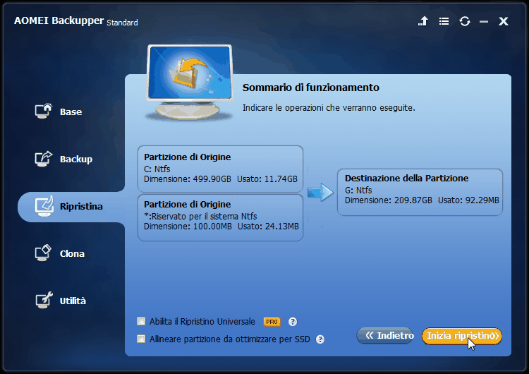 Ripristinare il computer in precedenza con AOMEI Backupper