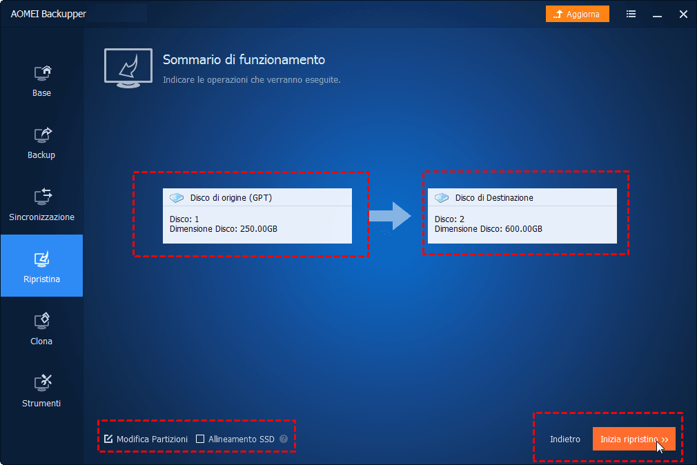 Normalmente, il ripristino di un backup immagine di sistema richiede molto tempo. A volte, fallisce anche con un messaggio di errore. Per prestazioni e comodità migliori, è possibile utilizzare software gratuito di terze parti - AOMEI Partition Assistant per eseguire il ripristino del sistema.