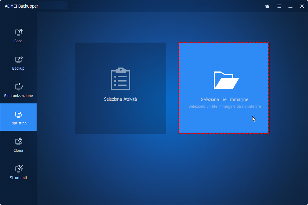 Passo 2. Verrà avviato direttamente nell'interfaccia intuitiva di AOMEI Backupper. Nella scheda "Ripristina".