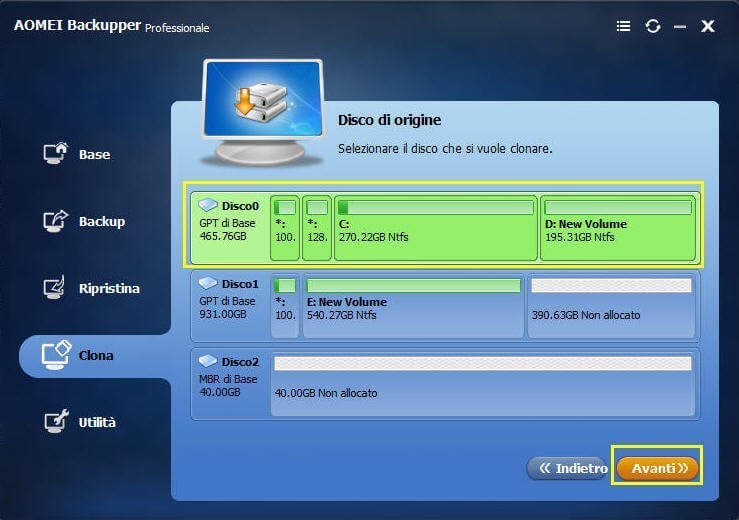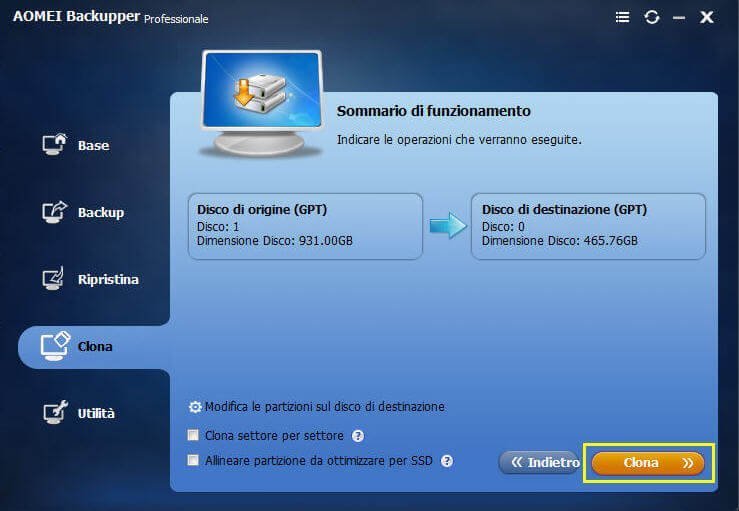 Fortunatamente, puoi provare il software di clonazione del disco - AOMEI Backupper Professional. Fornisce potenti funzionalità per te.
