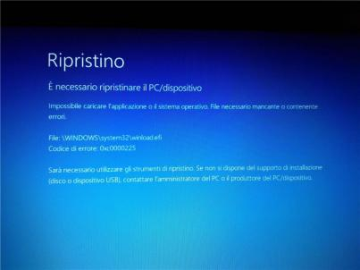 Impossibile caricare l’applicazione o il sistema operativo. File necessario mancante o contenente errori.