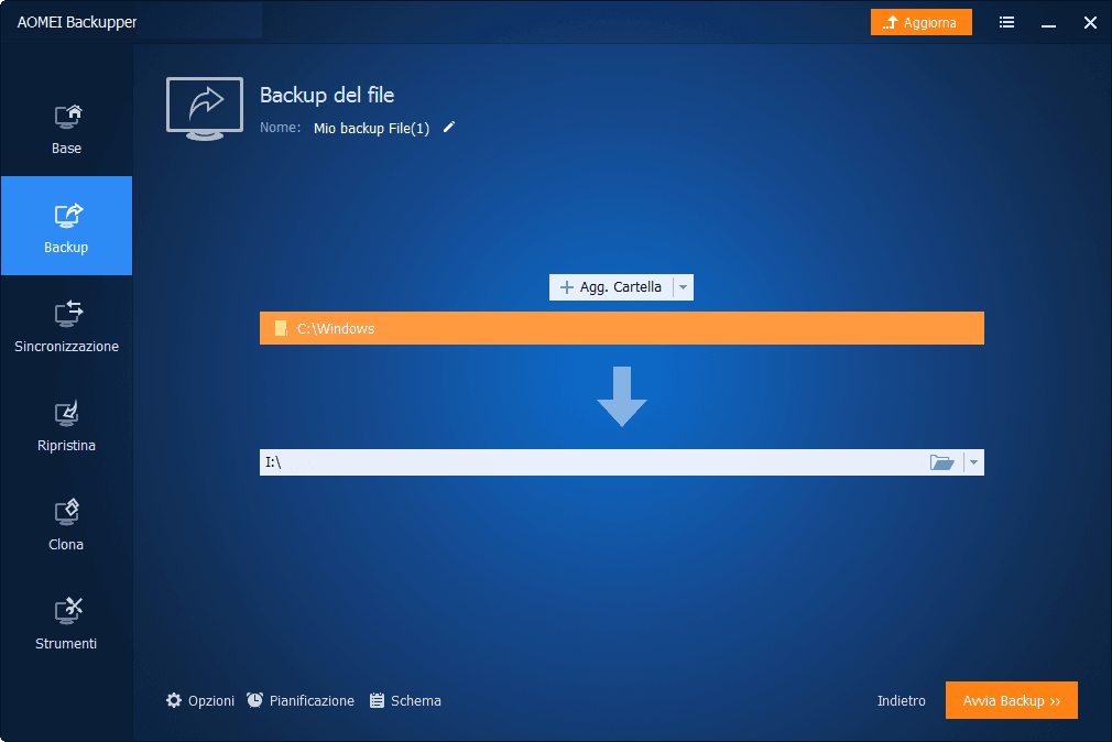 AOMEI Backupper supporta file backup, che significa puoi backup tutti i tipi di file o cartelle per i file immagine facile e al sicuro .