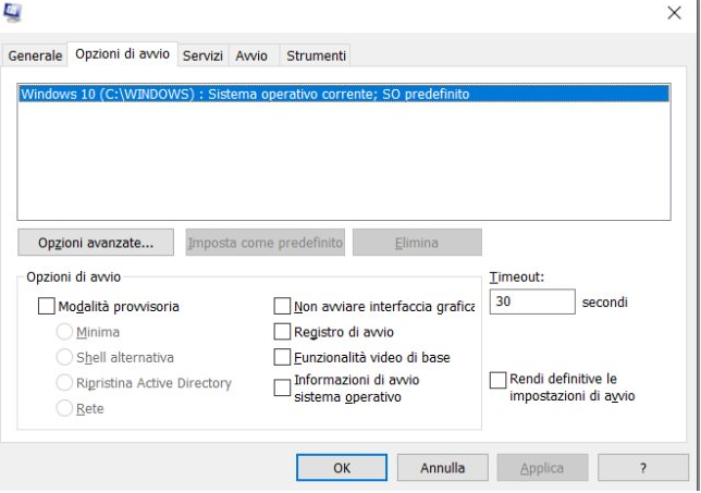 2. Nella scheda Opzioni di Avvio, seleziona l'opzione "Modalità Provvisoria" e clicca su "OK".