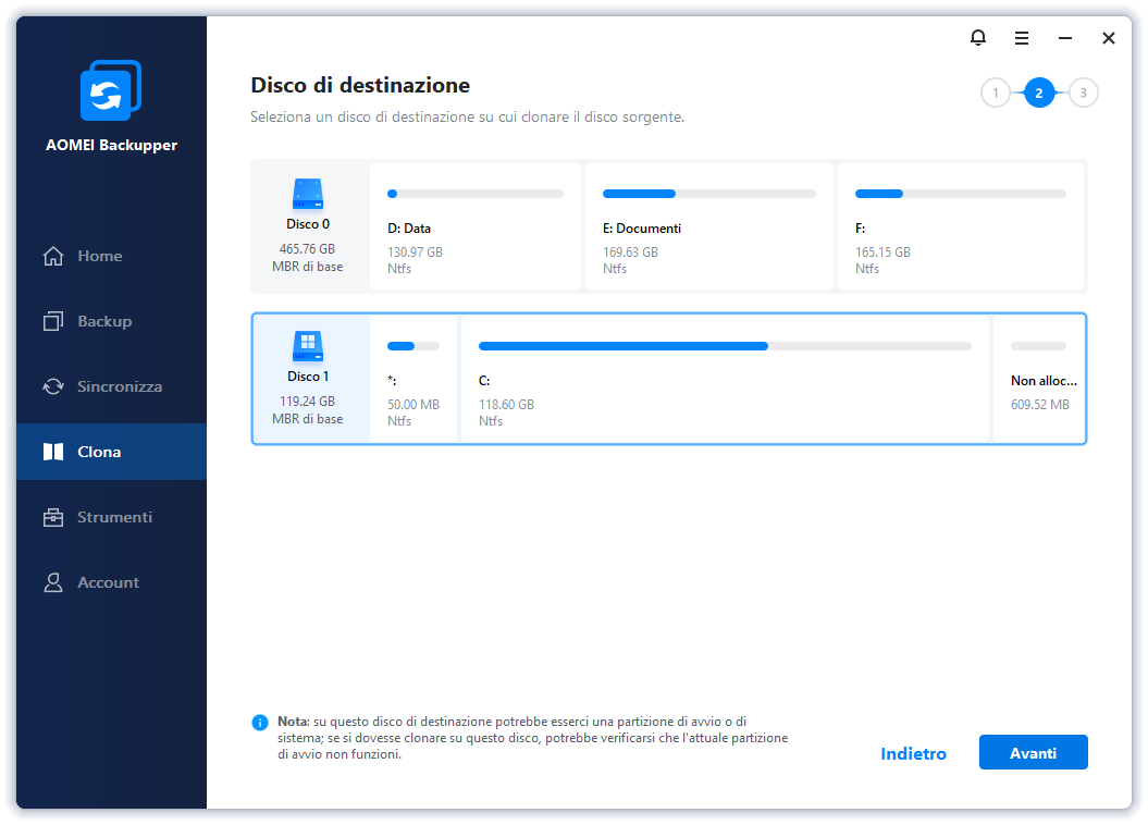 In generale, la clonazione del disco crea una copia esatta del disco originale, richiede che il disco di destinazione abbia le stesse dimensioni o sia più grande di quello originale.