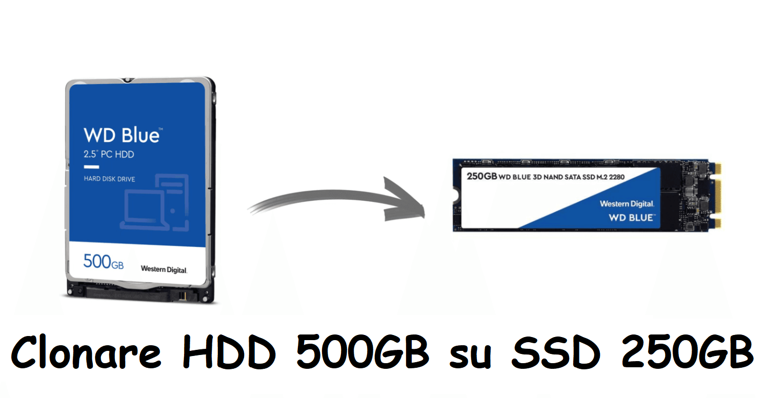 Per clonare un HDD da 500 GB su un SSD da 250 GB, attenersi alla seguente procedura: