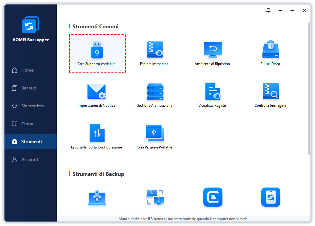 4. Avvia il tuo computer dal supporto di avvio appena creato. Quindi caricherà AOMEI Backupper.