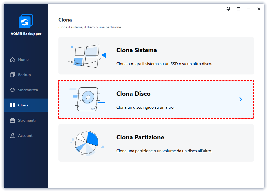1. Scaricare, installare e lanciare questo programma gratis di clonazione.