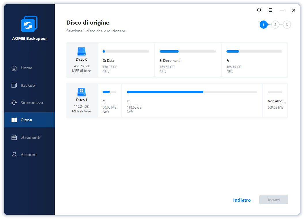 Imparare a clonare direttamente MBR su GPT per sostituire BIOS basato su UEFI. Software di clonazione - AOMEI Backupper è in grado di clonare i dischi tra GPT e MBR, garantendo nel contempo il disco clonato in grado di avviarsi correttamente.