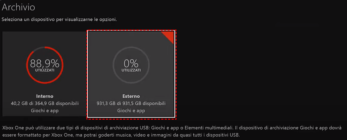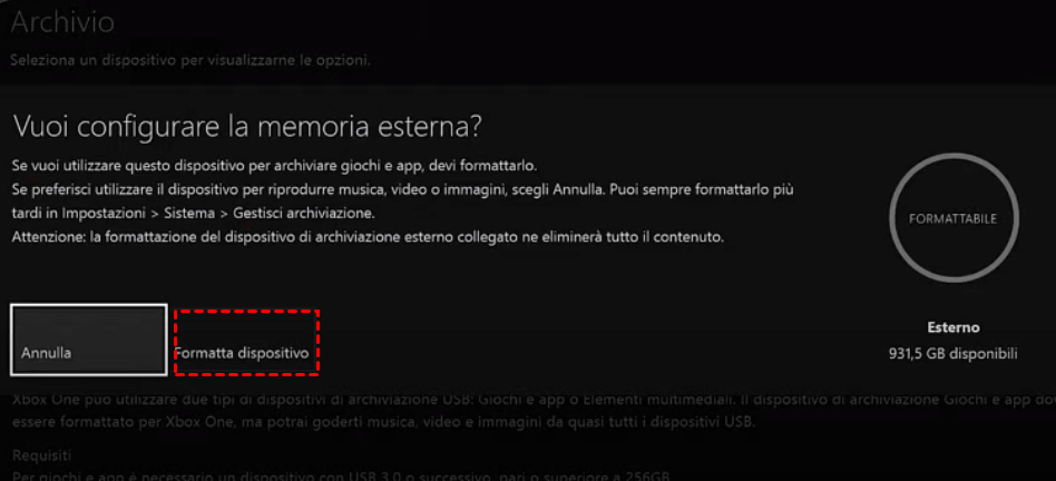 Guida dettagliata per formattare e installare il hard disk esterno di Xbox One S e poi spostare i giochi e le appicazioni: