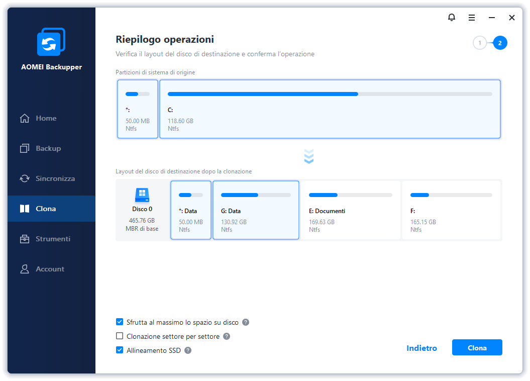3. Scegliere "Allineamento SSD" per ottimizzare per SSD opzione, fare clic Clona.