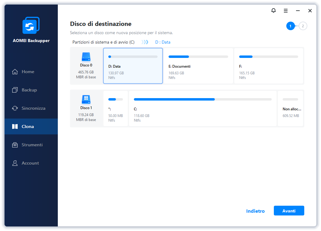 ● Se tuo WD SSD disco ha più partizioni, scegliere la prima partizione su WD SSD come destinazione. In caso contrario, il sistema non si avviava da Western Digital SSD.