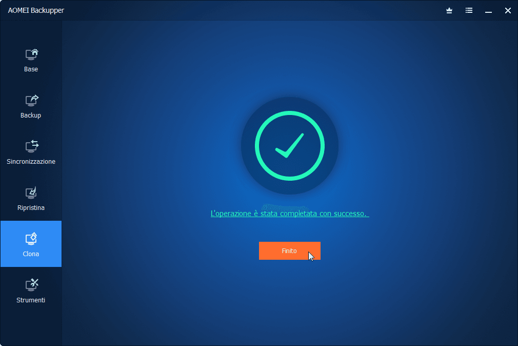 Passo 4. Quando il progresso della clonazione del sistema è completato, fai clic su "Finito".