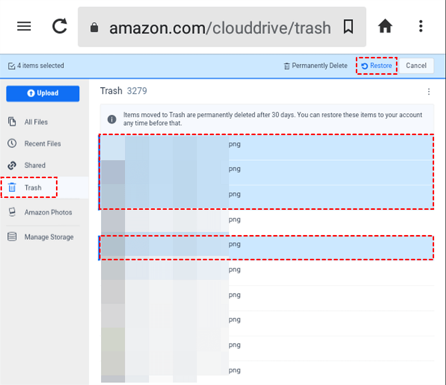 Le foto eliminate su Amazon verranno spostate nella cartella Cestino e conservate per 90 giorni. Puoi accedere a questa app tramite il browser web e recuperarle rapidamente.