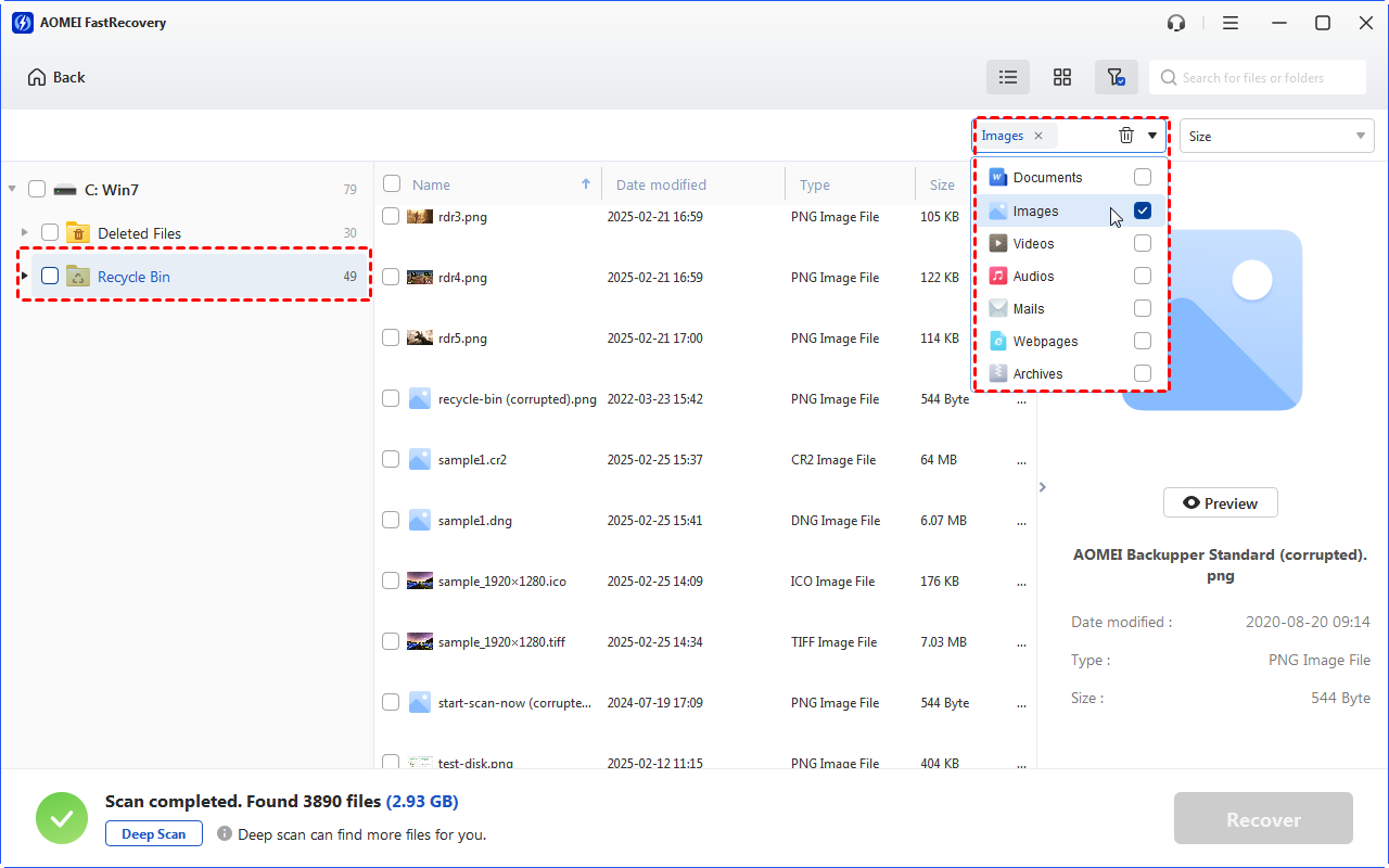 - Trova rapidamente e accuratamente le foto in formati specifici e anteprima prima di recuperarle.