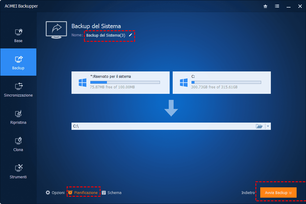 Aggiungere la pianificazione e avviare il backup ora: Il programma aggiungerà la pianificazione e eseguire immediatamente un backup completo del sistema. Quando si spegne il computer per la prossima volta, il programma eseguirà un backup tutto, incrementale o differenziale in base a cosa hai specificato a "Avanzato" linguetta.