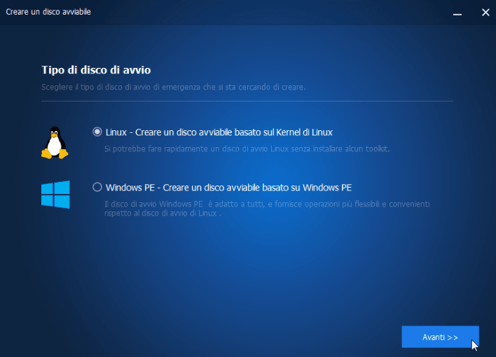 Per risolvere questo problema, è necessario utilizzare AOMEI Backupper per creare un Linux avviabile CD o creare Windows PE avviabile CD Legacy Boot in base alla modalità Legacy Boot. Puoi accedere a Utilità -> Creare supporti di avvio per crearlo.