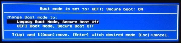 Dopo il CD avviabile ha creato, avviare il tuo computer. Qui è necessario modificare BOIS avvio modalità da UEFI a Legacy Boot Modalità come nella schermata qui sotto(puoi anche imparare a cambiare l'impostazione facendo riferimento al manuale della madre scheda).