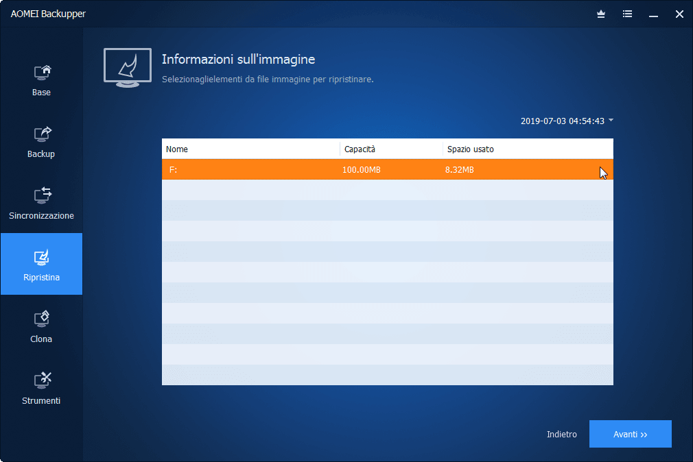 Se voresti rirpristinare i singoli file o cartelle selettive invece dell'intero backup, puoi utilizzare la sua funzione: Esplora Immagine. Consente di montare l'immagine come una partizione virtuale, e tutti i contenuti della partizione virtuale può essere viasualizzato in "Esplora File" o "Questo PC"del Windows. Poi puoi copiare i file che desideri ripristinare e poi incollarli in altre partizioni esistenti con le funzioni incorporate di Windows: "Copia" e "Incolla".