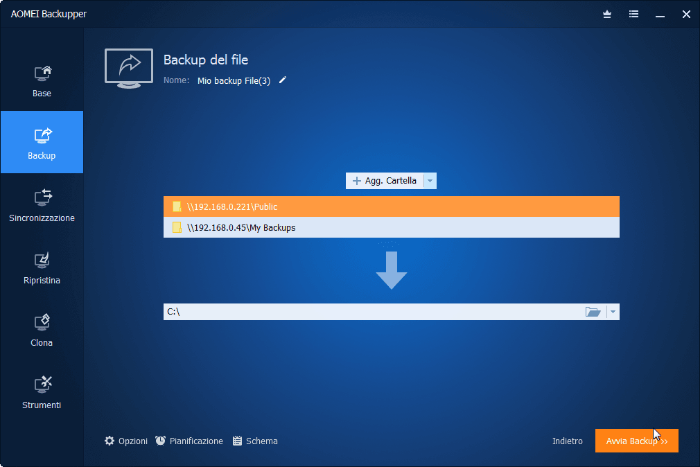Offre quattro tipi di backup per soddisfare le diverse esigenze: backup del sistema, backup del disco, backup delle partizioni e backup dei file.