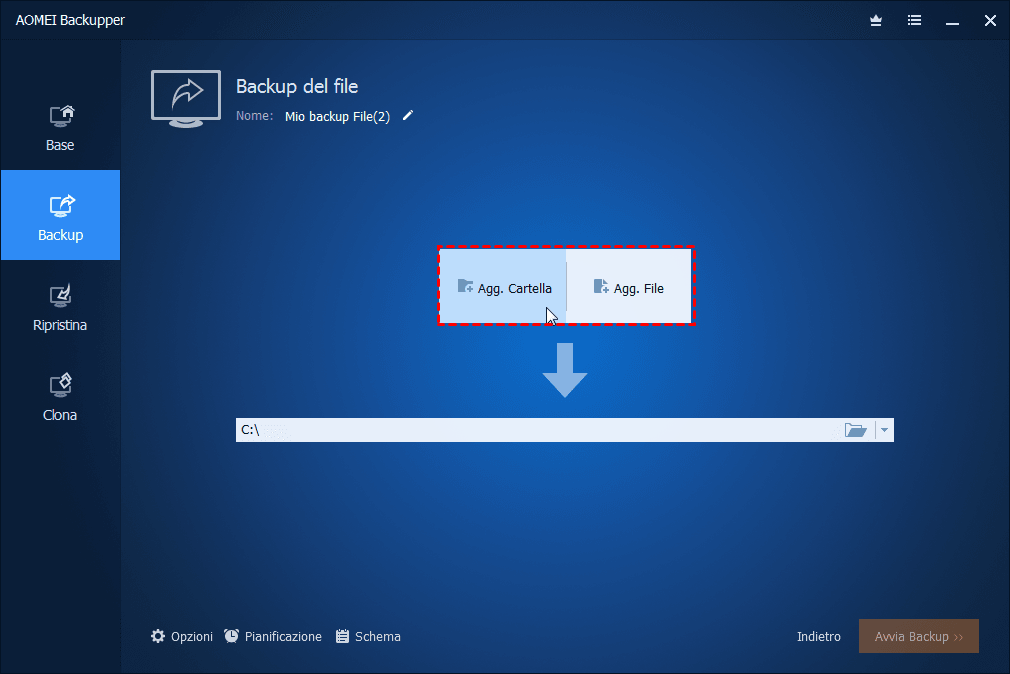 Backup nel pannello di sinistra e scegliere Backup del File. Step2. Assegnare un nome a questo backup. Fare clic su Aggiungi file o Aggiungi cartella per selezionare i file/cartelle di cui si desidera eseguire il backup.
