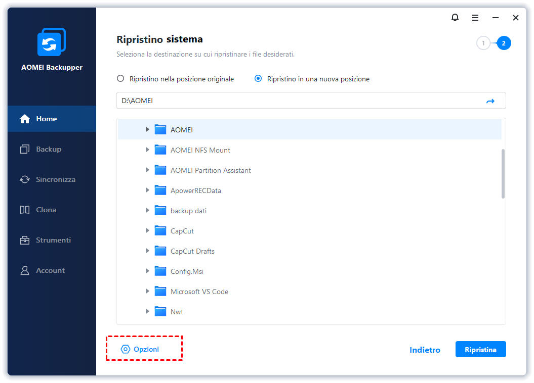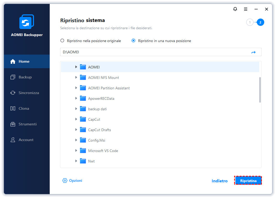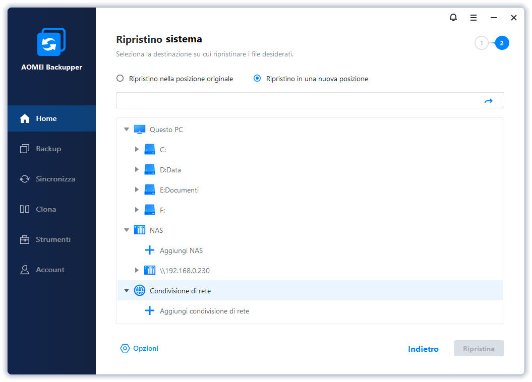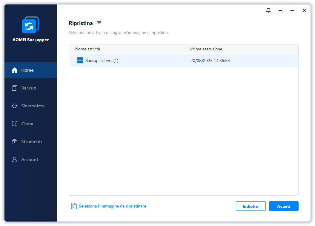 Per ulteriori dettagli con screenshot, vedi: Come ripristinare il sistema?.
