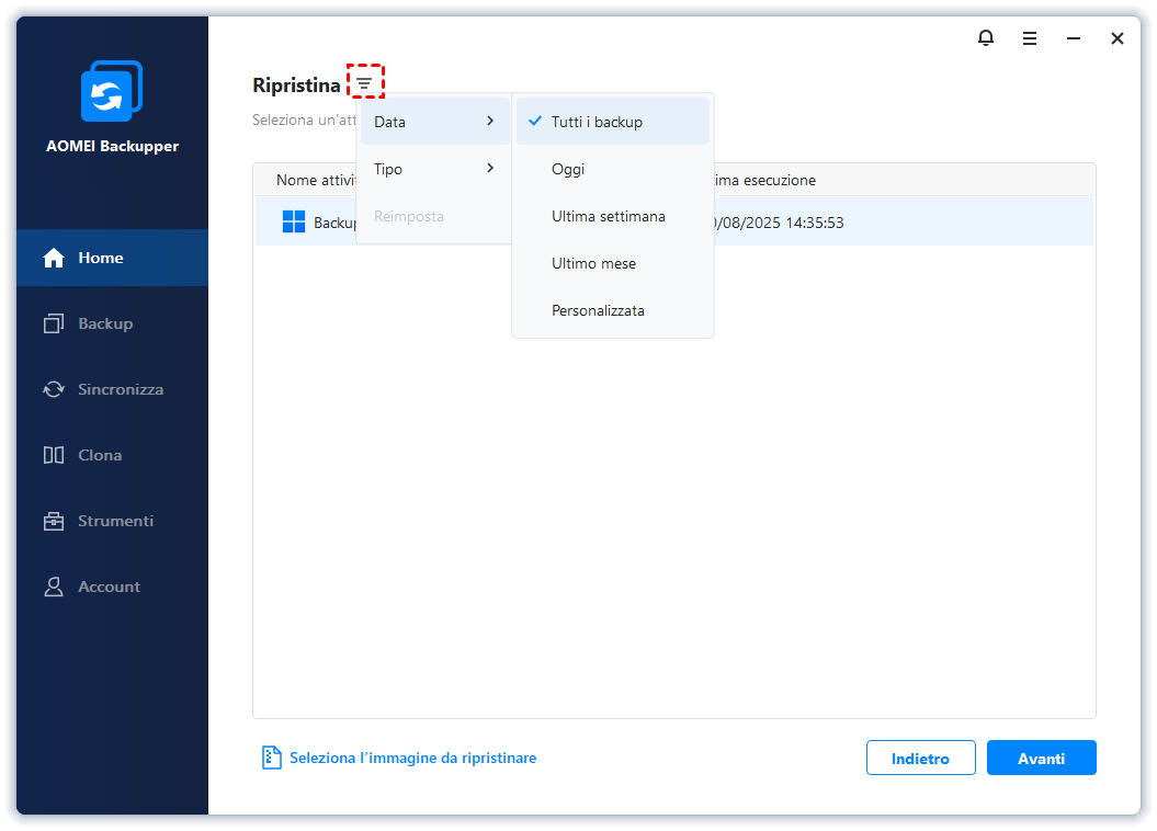 2. Hai preparato sistema backup immagine prima, e potrai utilizzare Backupper per trovare facilmente il file di immagine. In caso contrario, faccia un backup del sistema adesso. Vedi Sistema Backup.