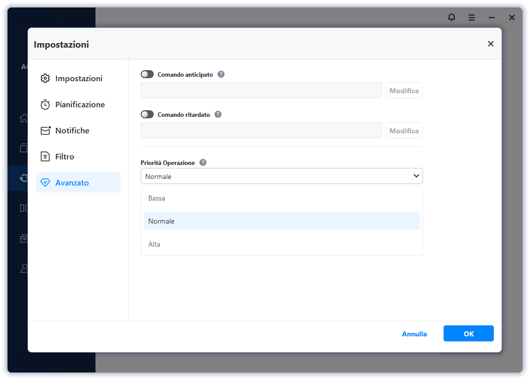 Priorità di operazione: selezionare la priorità operativa dell'attività. Maggiore è la priorità, maggiore sarà la velocità di esecuzione dell'attività.