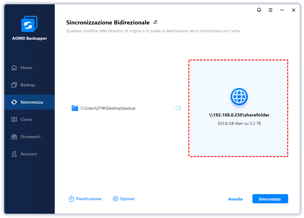 Come Eseguire Sincronizzazione Bidirezionale con AOMEI Backupper?