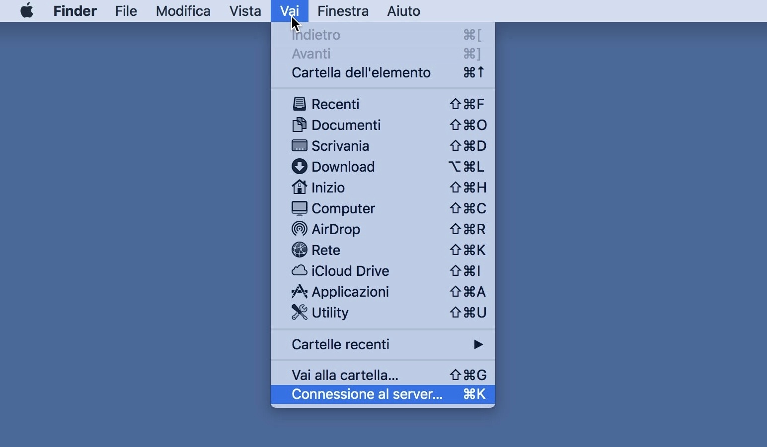 Sull'altro Mac, clicca su Vai nella barra dei menu, poi seleziona Connessione al Server e inserisci l'indirizzo del server (es. smb://NomeDelTuoMacDiOrigine.local).
