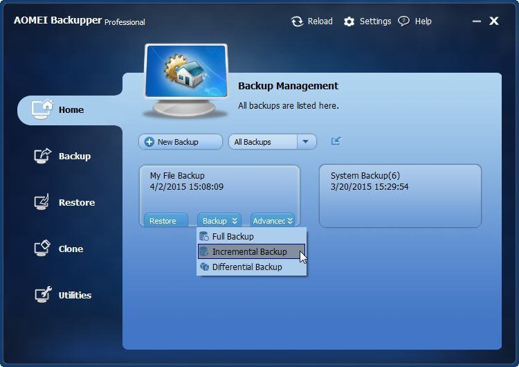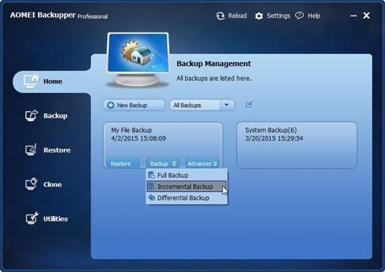 Backup Incrementale solo esegue il backup dei dati modificati o aggiunti rispetto all'ultimo backup (pieno, incrementale o differenziale); Backup Differenziale solo esegue il backup dei dati modificati o aggiunti rispetto all'ultimo backup completo. Entrambi i due backup possono risparmiare tempo e spazio di archiviazione.