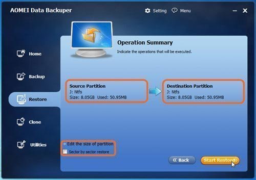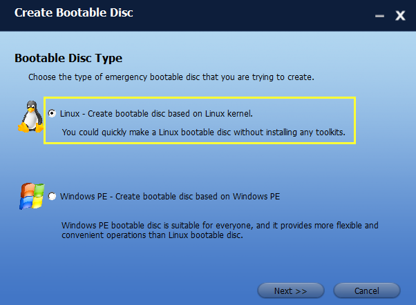 AOMEI Linux avviabile disco può essere utilizzato per ripristinare l'operazione o la clonazione.