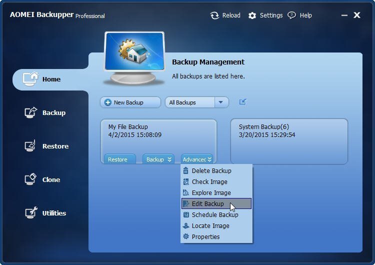 Il file di configurazione ha registrato tutte le attività di backup valide. Di solito, queste attività sono state elencate nella Home page di AOMEI Backupper. Esportando / importandolo in un file XML, è possibile salvare il record in un luogo sicuro nel caso in cui hai perso la cronologia di backup. Puoi ripristinare tutto di backup compiti a AOMEI Backupper.