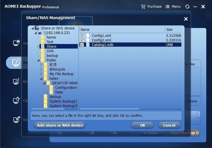 Se desideri salvare le immagini di backup su NAS / rete, ma dubiti che li troverai tra i tuoi file / cartelle con il passare del tempo, non devi più preoccuparti. Ora, AOMEI Bakupper supporta esplorare i file di immagine salvati sul NAS / rete da pochi clic.