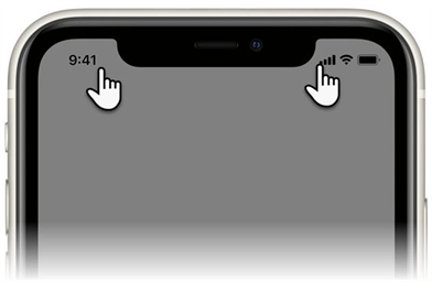 2. Tocca la barra superiore sull'interfaccia dello schermo. La barra mostra l'ora, il nome del tuo operatore, il livello della batteria, ecc.