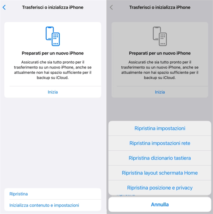 Apri le Impostazioni del tuo iPhone > Vai su Generali > Clicca su Ripristina > Poi, clicca su Ripristina tutte le impostazioni > Inserisci il codice per completare.