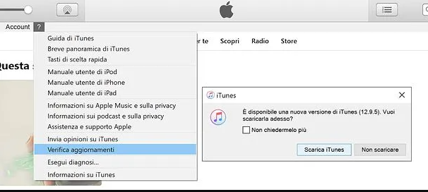 Se iTunes non riconosce l'iPhone in Windows 11, puoi scegliere di controllare gli aggiornamenti di iTunes andando su iTunes > Guida e selezionando Verifica aggiornamenti.
