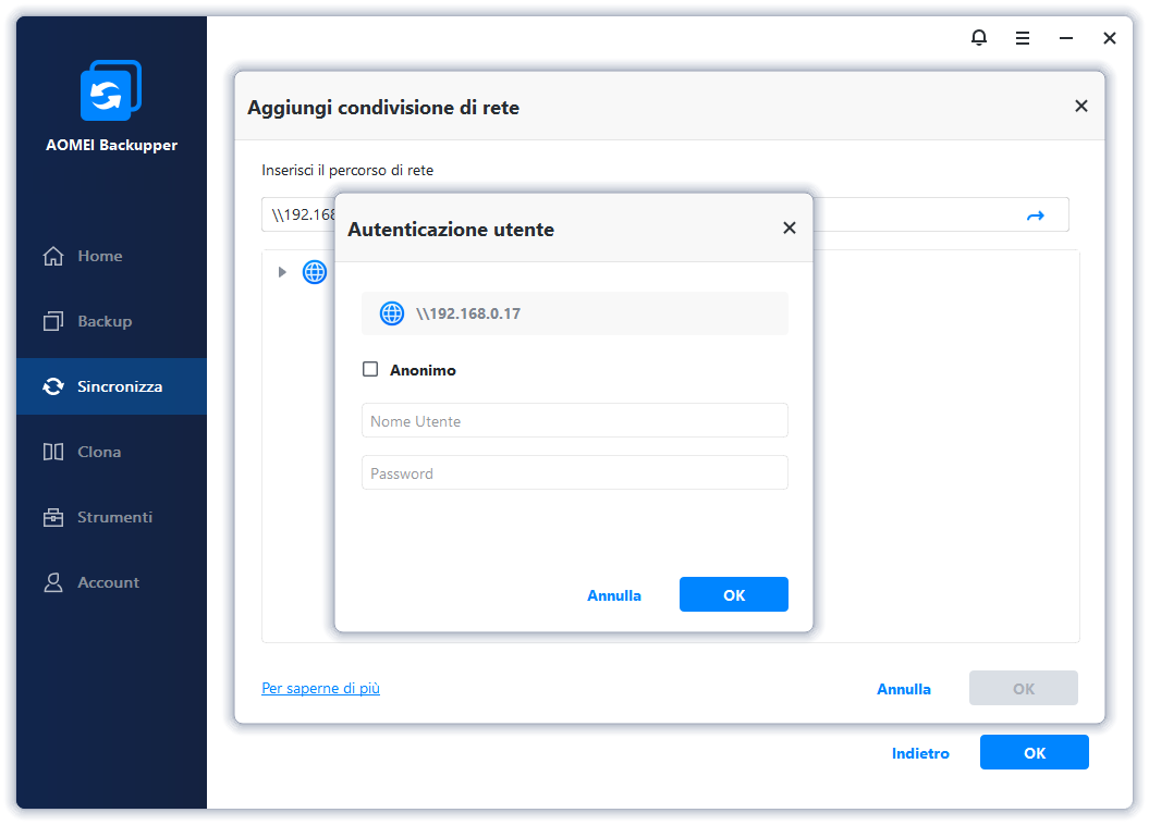 Vorrei consigliarti il miglior software gratuito per la sincronizzazione dei file: AOMEI Backupper Standard.
