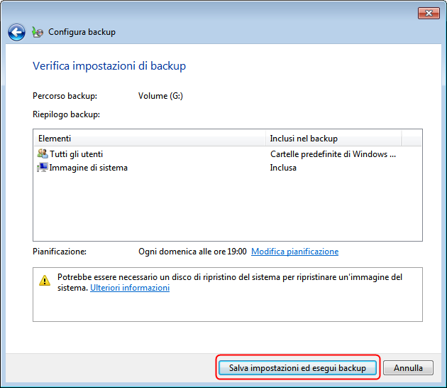 6. Nella schermata successiva, ti fornirà un riepilogo di questa operazione di backup. Se non ci sono problemi, fai clic su Salva impostazioni ed esegui il backup.