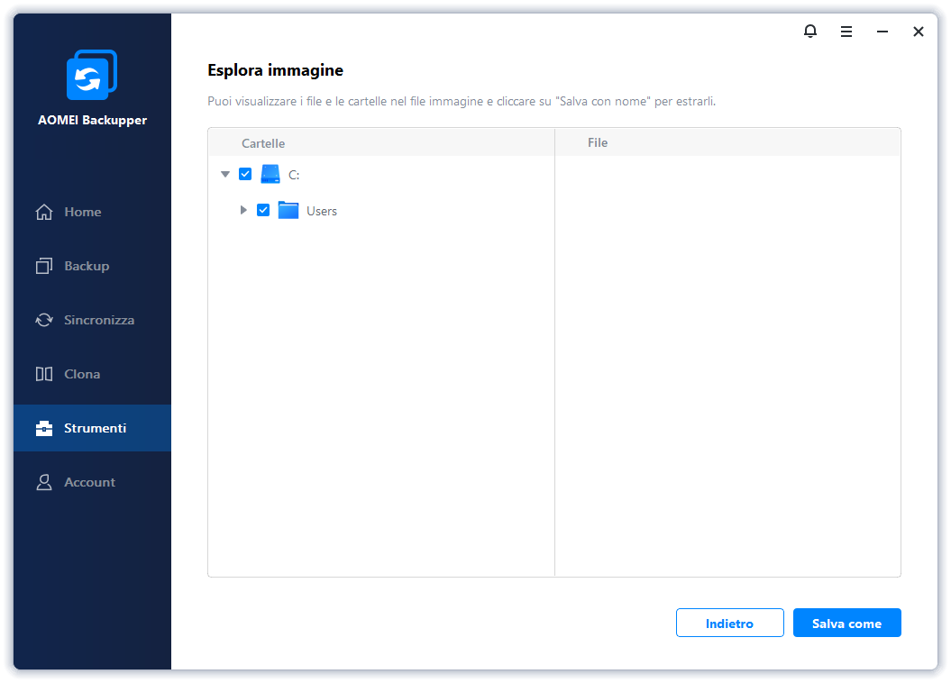 Se voresti rirpristinare solo i singoli file e cartelle selettive invece di tutti i file e cartelle archiviati nel backup, puoi utilizzare la sua funzione Esplora Immagine. Consente di scegliere solo una parte del backup e ripristinarla in un percorso selezionato.