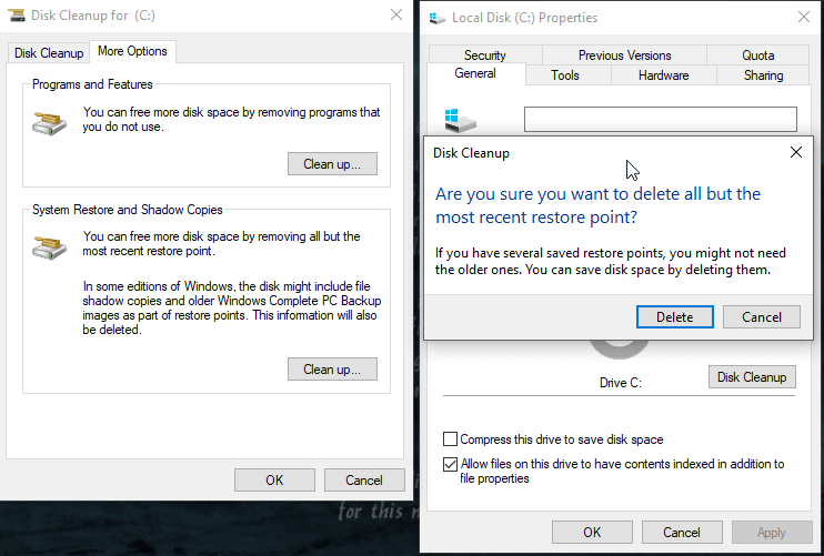 4. In una finestra di conferma a comparsa, fare clic su Delete per eliminare tutto tranne il punto di ripristino più recente.