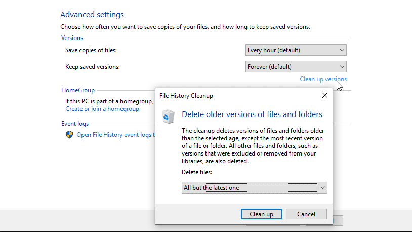 Per impostazione predefinita, Cronologia file di Windows 10 salverà per sempre tutte le versioni, quindi, alla fine, il disco di backup di Windows 10 sarà pieno. È possibile modificare facilmente tale impostazione per eliminare automaticamente le versioni precedenti.