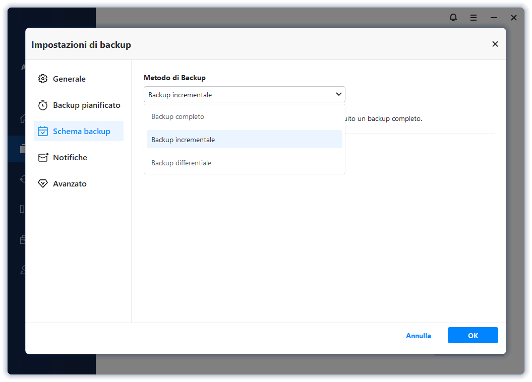 5. Fare clic su Schema, selezionare di creare un backup completo facendo clic su Backup Tutto e poi fare clic su OK.