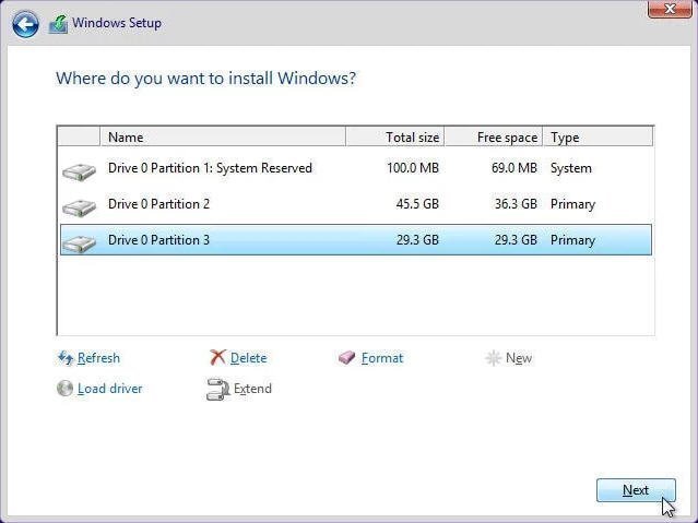 7. Seleziona il tuo SSD per installare Windows.
