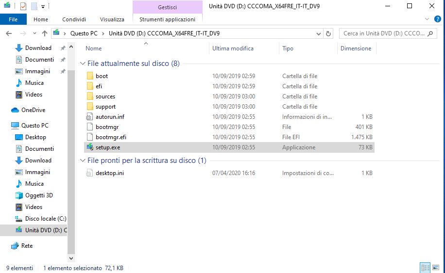 2. Fai doppio clic per montare il file ISO (per Windows 7, è necessario utilizzare altri strumenti per montarlo). Nella directory root, fai doppio clic per eseguire il file Setup.exe.