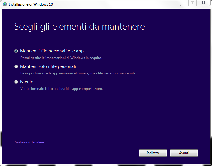 5. Fai clic sul link ''Scegli gli elementi da mantenere''. Da lì, puoi scegliere di conservare file e app, solo file personali o nulla. Basta selezionare quello e continuare a installare Windows 10.