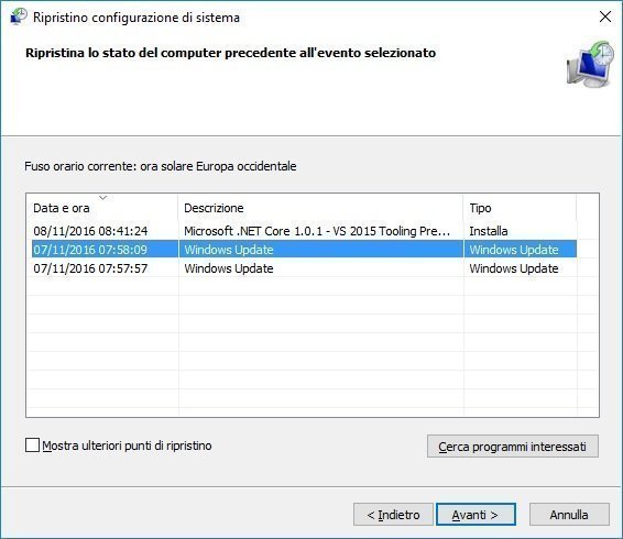 Opzione 2: Ripristinare Windows 10 da un Punto di Ripristino del Sistema