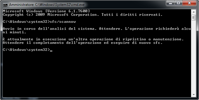 3. Digiti "sfc / scannow" (senza virgolette) e premi Invio.