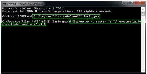1. Passare alla directory di installazione di AOMEI Backupper digitando il seguente comando nella riga di comando e premere Invio. Ad esempio: cd C:\Program Files (x86)\AOMEI Backupper.