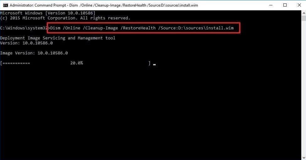 Se SFC non è in grado di risolvere il problema, probabilmente l'utilità non può ottenere i file necessari dall'immagine di Windows, che potrebbe essere danneggiata. In questa situazione, è possibile utilizzare DISM per ripristinare l'immagine di Windows.