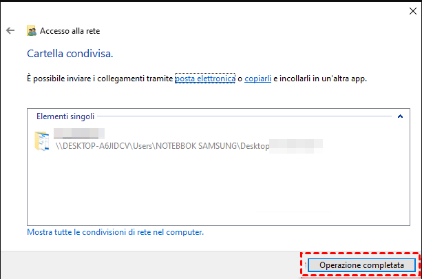 Passo 6. Prendi nota del percorso di rete della cartella di cui gli altri utenti avranno bisogno per accedere ai file di condivisione in rete. Poi fai clic su Operazione completata.